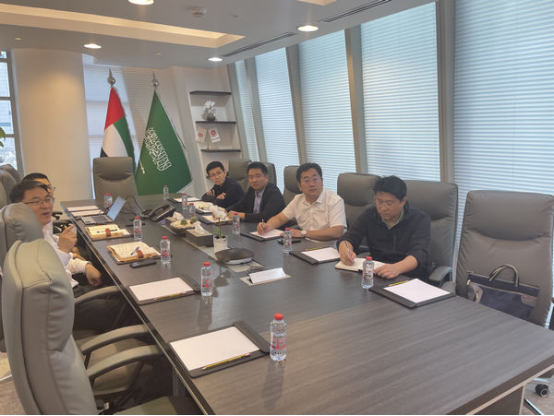 调研中,在中材海外公司项目部,张新煜与中材海外公司工程部部长吕威、项目经理张怀伟进行了沟通交流,深入了解了沙特未来建筑市场趋势,以及在沙特成立分、子公司等方面情况,为规划海外市场发展做好铺垫。新迈克中东工程有限公司是中材海外公司在迪拜成立的中东子公司,张新煜专程拜访了中材海外中东子公司总经理刘渠东,双方就中东市场发展前景进行了交流探讨,详细了解了该公司在水泥EPC+、风电新能源及节能环保、属地化经营投资等各项板块的开发经营模式,以及在中东地区承接项目应具备的条件和注意事项等,大家沟通交流氛围融洽,双方表示将继续加强合作,实现互补,共同发展。