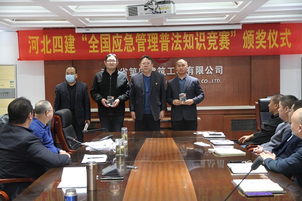 12月20日,公司“第三届全国应急管理知识普法竞赛”颁奖仪式在三楼会议室举行,14名取得省市区前百名成绩的优秀选手受到表彰。公司党委副书记、总经理唐志强,总工程师高任清、副总经理刘金河为获奖者代表颁奖。