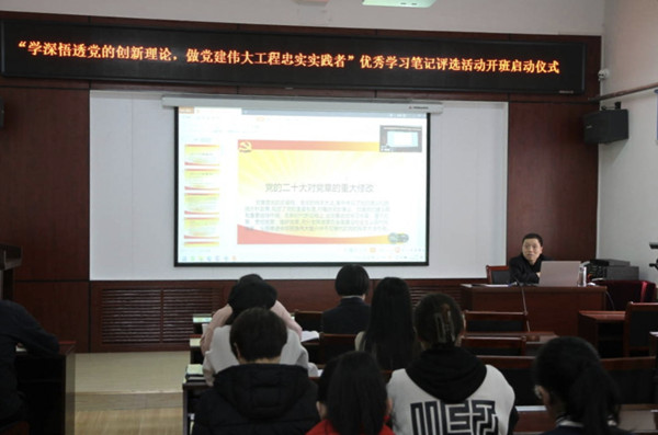 李怀生紧密结合学习宣传贯彻党的二十大精神,从历次党代会对党章的修改情况、党的二十大为何要修改党章、学习党章修正案是学习党的二十大精神的重要内容、党的二十大对党章的重大修改、新旧《党章》重要条目对比等五个方面对《党的二十大对党章的重大修改》进行了全面系统讲解。讲到党的十六大党章将“三个代表”重要思想确立为党的指导思想,对党的性质作了“两个先锋队”的阐述时,他问到:“中国共产党是中国工人阶级的先锋队,另一个‘先锋队是什么?”“中国人民和中华民族的先锋队”王彦森回答到。李怀生一边讲课一边提问,这种一问一答的互动方式,把21个人的注意力、学习专注力全部吸引到课堂上。讲完第一节后他还会从头到尾出几道题再给大伙儿串一下,检验大家学习理解的情况,然后再讲下一节内容,在两个半小时课堂上,大家动也不动听得聚精会神。时间过得真快,五点整在热烈的掌声中结束了这节既有理论高度,又有内涵深度,主题突出、立意深远的《党章》宣讲骨干培训专题课。
