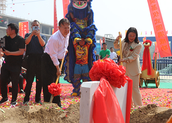 发言结束后主席台上的主要领导及嘉宾移步到启动前,在主持人指令下,缓缓推动了开工仪式启动杆最后大家一同拿起铁锹为项目奠基碑培上第一铲土,宣告项目动工兴建正式开始,现场顿时掌声雷动礼炮齐鸣挖掘机、翻斗车等机械设备鸣笛庆贺,将开工典礼仪式推向高潮。