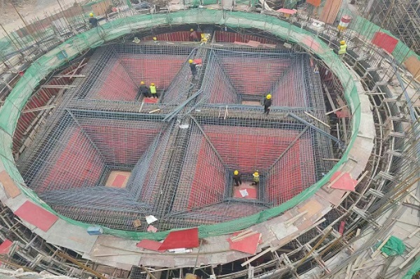 面对延误的工期和困难,项目管理团队不抱怨、不气馁,八月中旬与分公司相关部门共同策划,细化施工计划,优化施工工序,明确各关键节点的完工时间。为提高施工速度,由原先的2个筒仓同时滑模流水作业,改为4个筒仓同时滑模平行作业。项目部优化增配施工人员和机械设备——施工人员由原先的100人增加到150人,实行24小时轮班制,确保现场施工不间断;现场设置了三台塔吊和两处材料加工区,还增加了汽车吊迅速将材料吊运至各个施工点,多台机械设备的同时作业,大大提高了工程整体进度。9月25日,6个筒仓滑模到顶,比甲方规定的工期提前了15天。在工程进度调度会上,项目部得到了甲方武安市裕华钢铁有限公司总经理郑雷生的肯定:“工期紧、任务重,可你们不仅干得快,还干得好!”